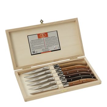 En kniv av modellen Stekkniv Mixade träslag/Rostfri från Laguiole. Fri frakt!